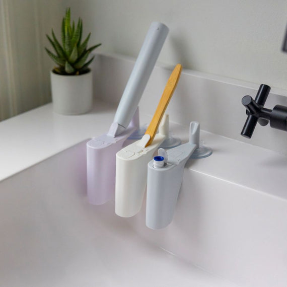 I’d been searching for a sanitary toothbrush setup for months. I didn’t want a bulky container taking up counter space/ or a holder that lets water collect at the bottom.